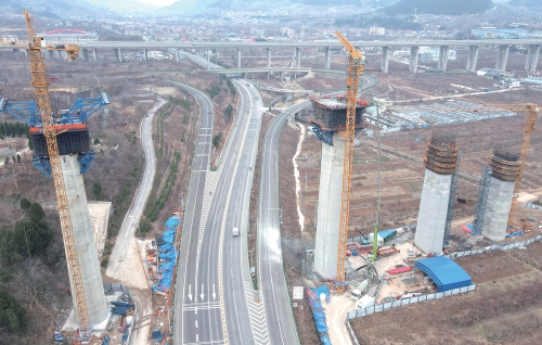 3月16日,在濟棗高鐵濟南南部山區段施工現場,工作人員對高架段梁柱進行澆筑。進入3月份后,濟棗高鐵全線105個工點實現復工,針對施工難點,濟棗高鐵今年將集中力量對路基、橋梁、隧道等施工單元攻堅,截至目前已分別完成30%、49%、44%,全線已進入大規模施工階段,18座隧道已貫通6座,今年計劃實現11座隧道貫通,箱梁計劃完成架設4300榀。