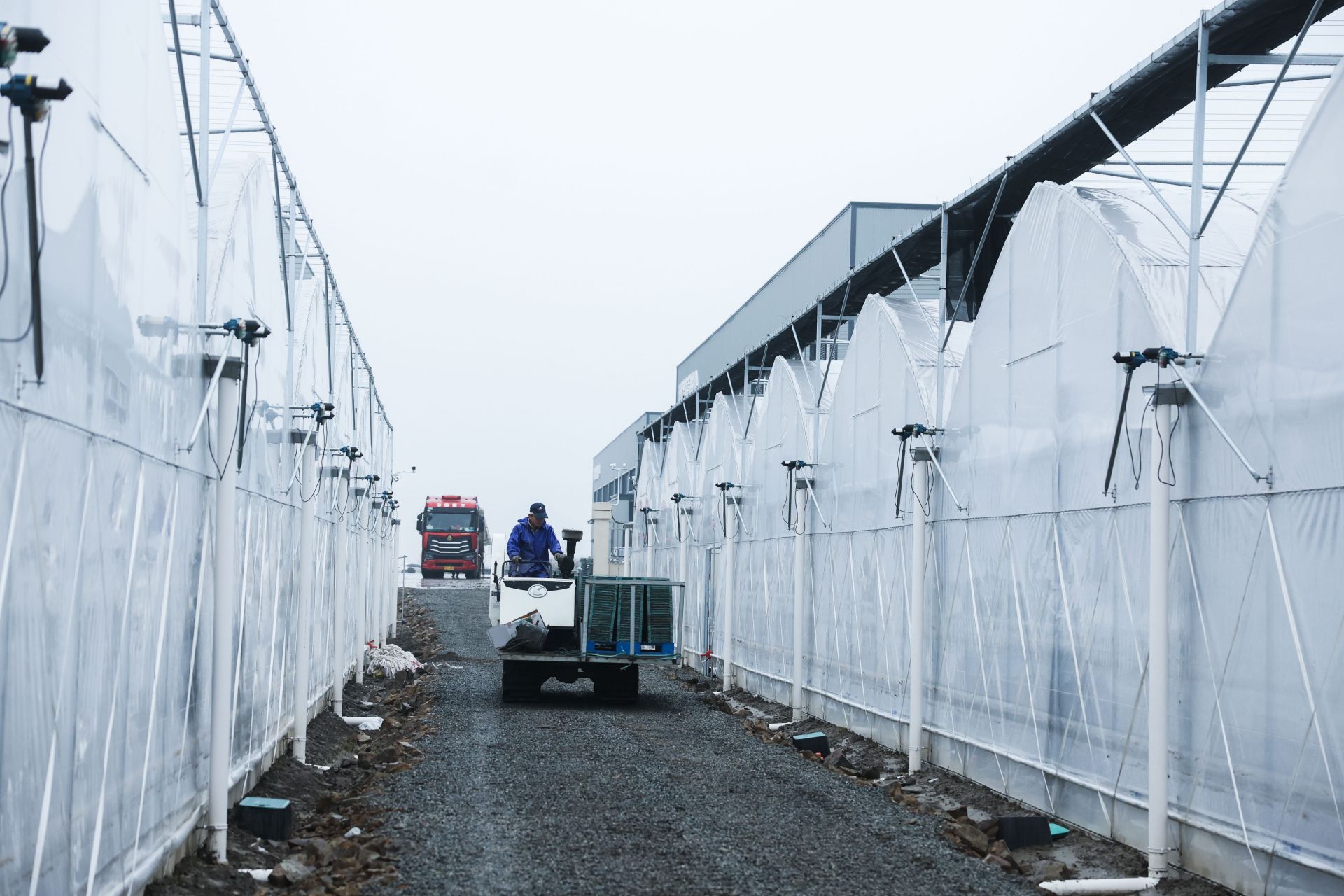 3月17日,慈溪市騰豐省級現(xiàn)代化農(nóng)事服務(wù)中心的工作人員把出芽的育秧盤運(yùn)送到育秧大棚內(nèi)。