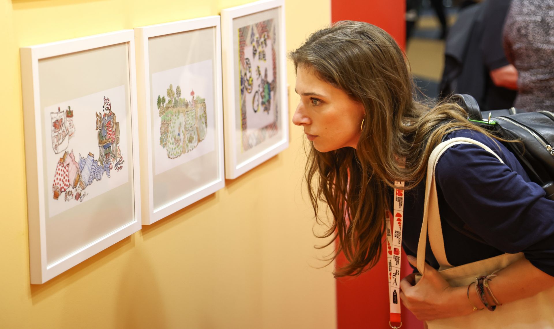 4月14日,在意大利博洛尼亞,觀眾參觀第63屆博洛尼亞國際兒童書展中國兒童圖畫書優秀作品展。