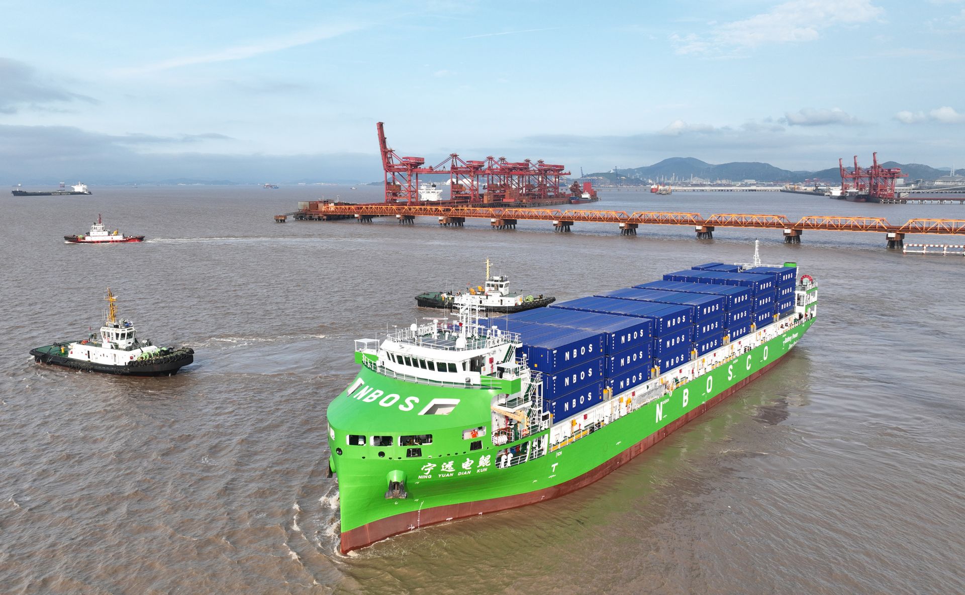 4月15日,全球最大、國內首艘萬噸級純電動智能集裝箱海船“寧遠電鯤”輪從寧波舟山港北侖港區啟航,駛向嘉興港乍浦港區,標志著該船正式投入商業航線運營。