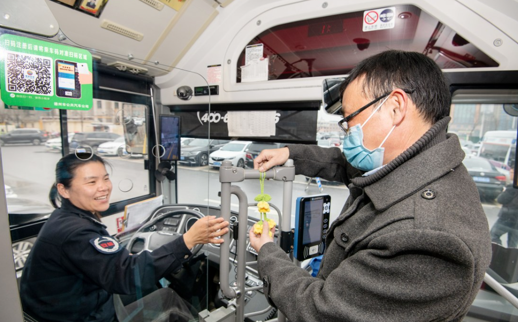 真心換真心,駕駛員們收到許多乘客的“回禮”。市立醫院醫生劉召訓天天乘坐公交上班,為了感謝38路線駕駛員的真情服務,他的愛人給每輛38路公交車編織了一束毛線鈴蘭花。“鈴蘭花象征著吉祥好運,希望駕駛員們都能平安出行。”88歲老人陳翠娥經常獨自乘公交,駕駛員們總是貼心地扶她上下車,幫她提東西,而陳翠娥也不時送去水果、粽子,還為駕駛員們織毛衣。